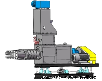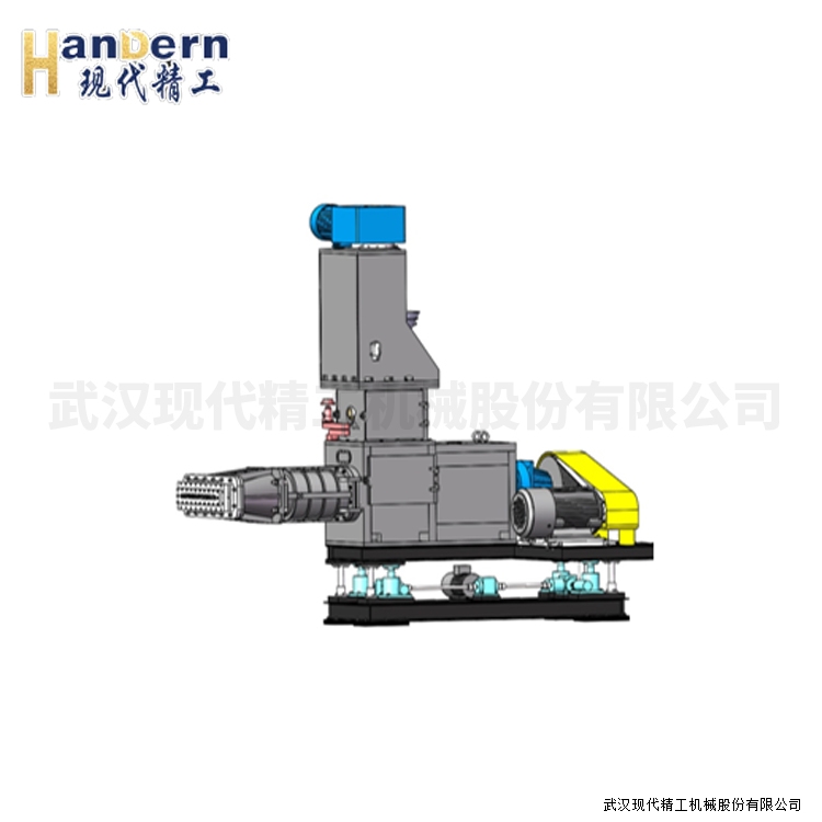 攪拌混煉系統:它由高速混合攪拌機和螺桿擠出捏合機組成。高速混合攪拌機靠安裝在攪拌筒內帶動葉片的行星軸不斷旋轉,將物料進行強制擠壓,翻轉等復合運動,從而實現強制攪拌,而使物料混合均勻。水泥、粉煤灰、纖維經高速攪拌機混合均勻后,通過卸料口進入捏合機,在捏合機內經過充分混煉后,由底部螺桿擠出,通過皮帶輸送機輸送至擠出成型系統。