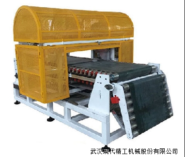同步切割系統:它是由同步切割機和相關控制系統組成,它將擠出機擠出成型的濕坯板材按照所需長度切割成一定長度的濕坯板材,切割過程中,鋸片沿板材輸送方向,以板材輸送速度同步移動,從而保證板材端面的平直。