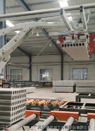 抓取堆垛系統:養護硬化后的纖維水泥板通過龍門架抓取裝置,從輸送輥筒上抓取板材,堆放在指定區域。